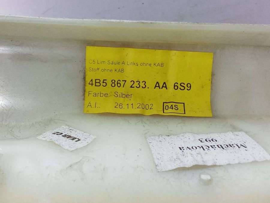 Купить Обшивка стойки передней левой (накладка) Ауди А6 Ц5, А6 С5 (1997 - 2005) на авторазборке для иномарок Europodbor.ru в Новосибирске.