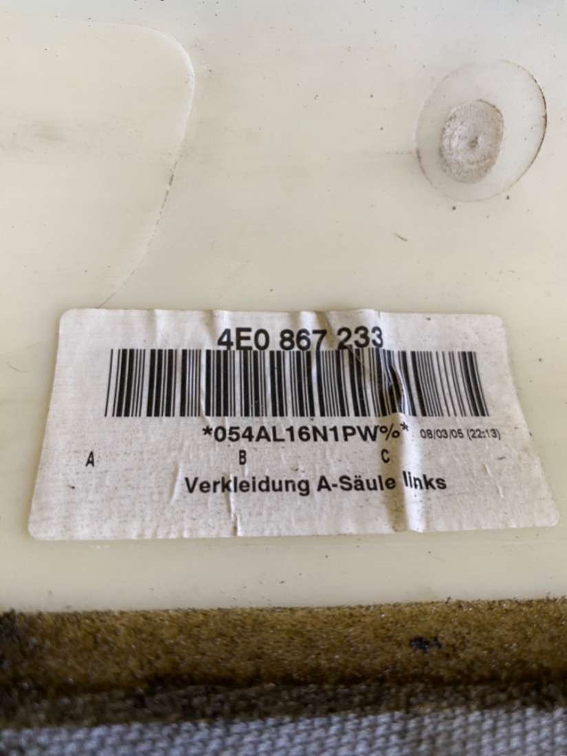 Купить Обшивка стойки передней левой (накладка) Ауди А8 Д3 (2002 - 2010) на авторазборке для иномарок Europodbor.ru в Новосибирске.