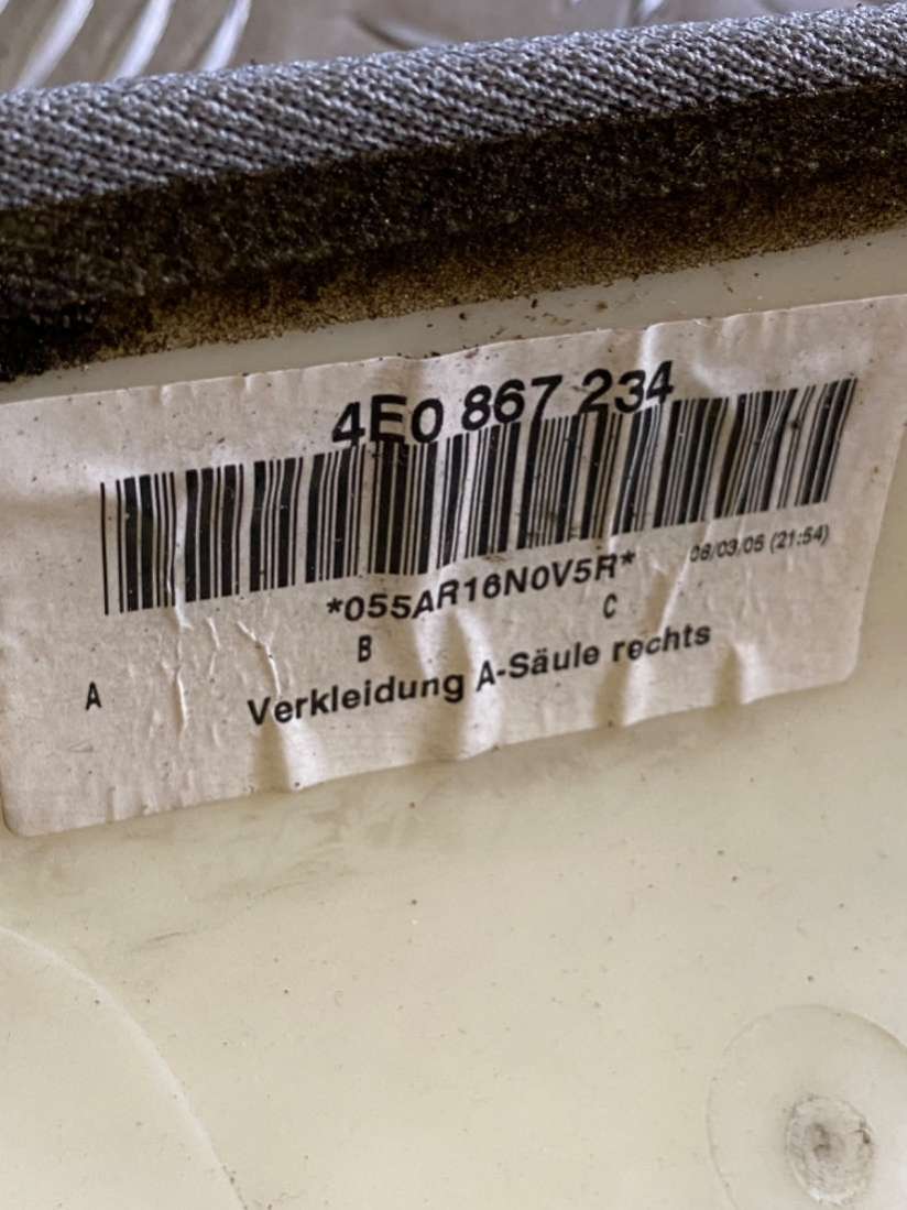 Выберите обшивка стойки передней правой (накладка) для Audi A8 D3 (S8) по цене и состоянию из предложенных ниже объявлений из каталога для оформления заказа.
