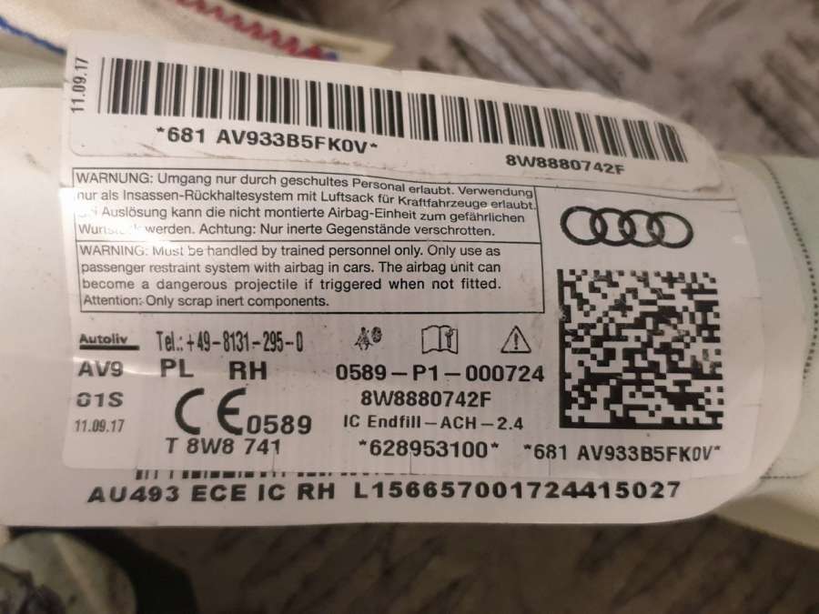 Купить Подушка безопасности боковая (шторка) правая Ауди а5 на авторазборке для иномарок Europodbor.ru в Новосибирске.