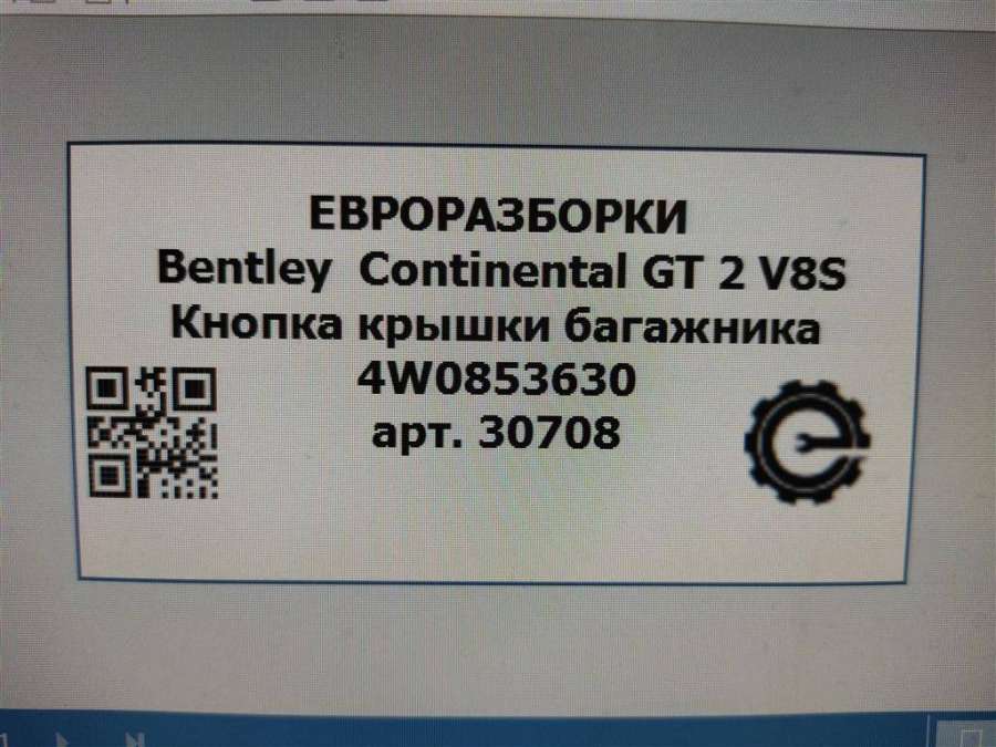 Continental Кнопка открытия багажника к Bentley Continental 4, 2017 Артикул: LAP-30708Под заказ: Под заказНомера запчасти: 4W0853630Авто: 4.0 Спросить Позвонить 41605