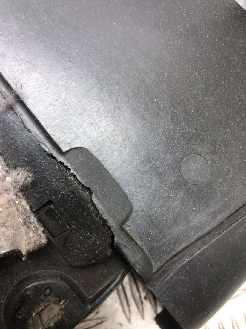Обшивка панели приборов (под рулем), дефект на фото