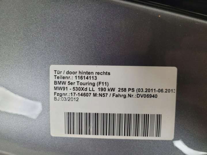 Выберите дверь задняя правая для BMW 5 F10/F11/GT F07 по цене и состоянию из предложенных ниже объявлений из каталога для оформления заказа.