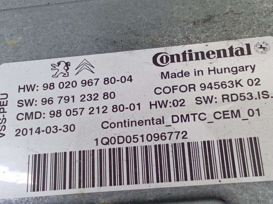 - Номера запчасти: 9802096780