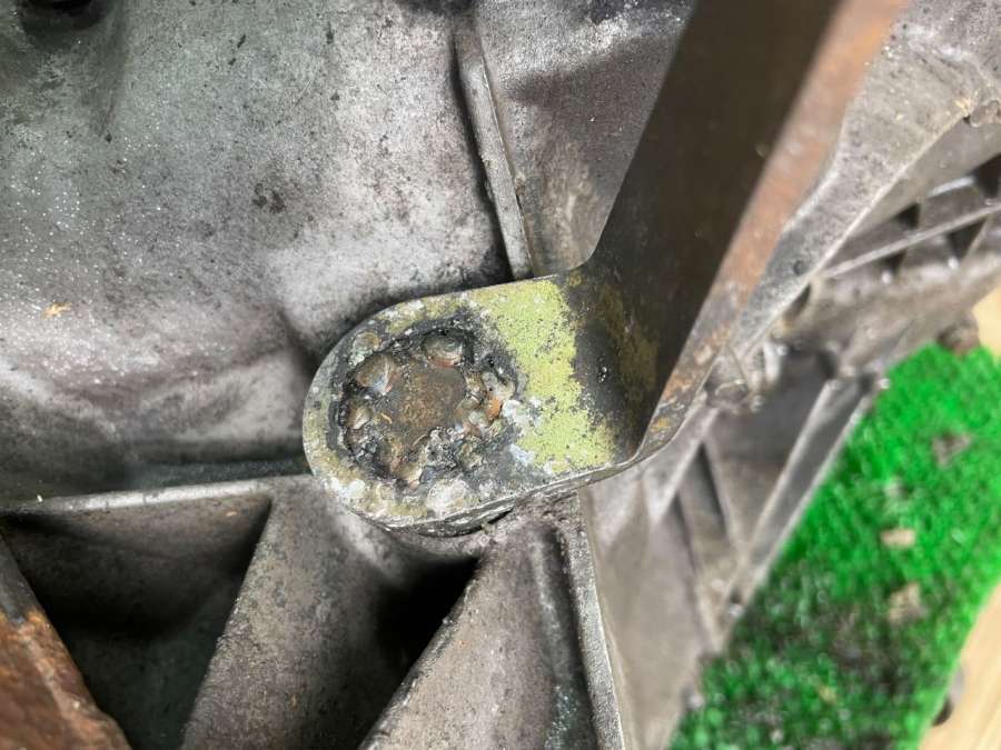 Пробит корпус сверху в районе лапы крепления.