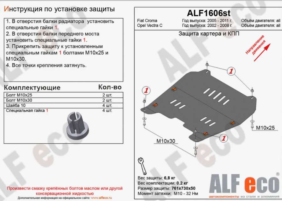 Защита (пыльник) двигателя к Fiat Croma 2, 2006