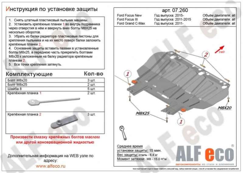 - Название:Защита двигателя Ford Focus (1998-2005) 310403