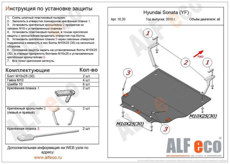 Защита (пыльник) двигателя к Hyundai Sonata (YF), 2010