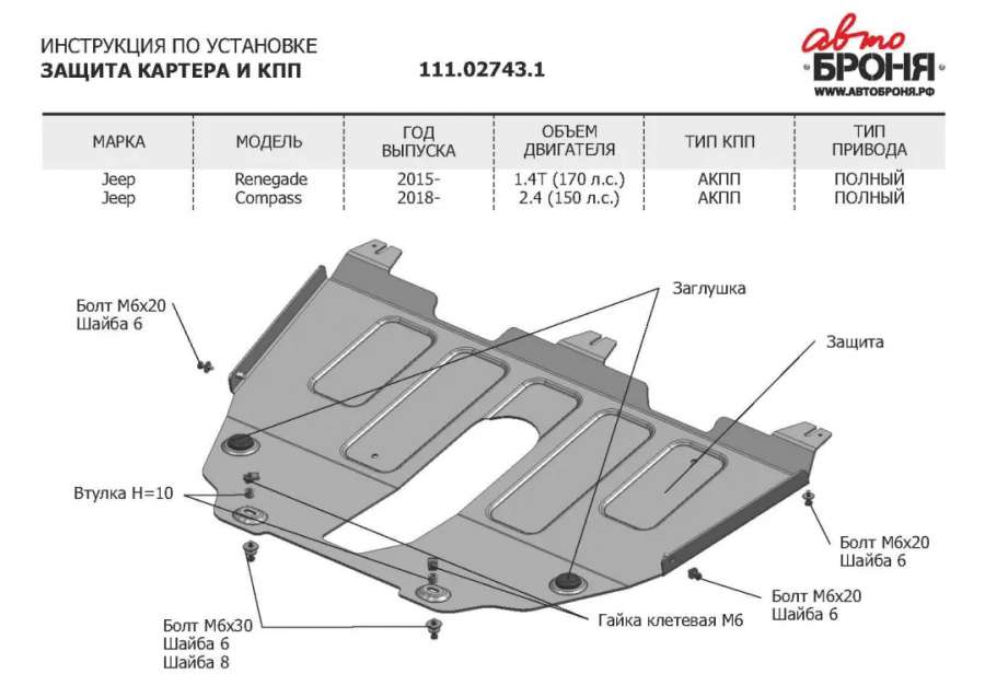 Защита (пыльник) двигателя Jeep