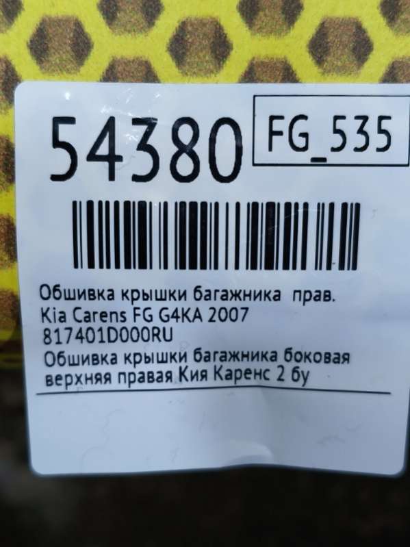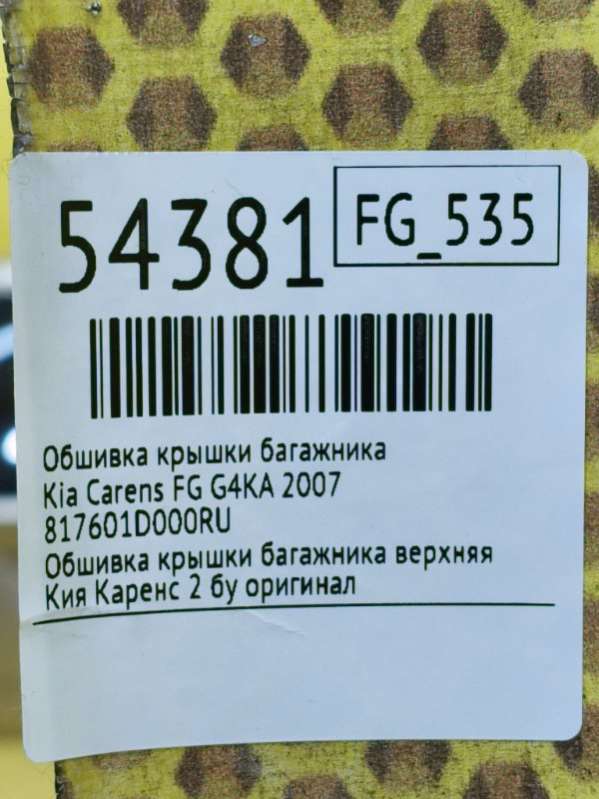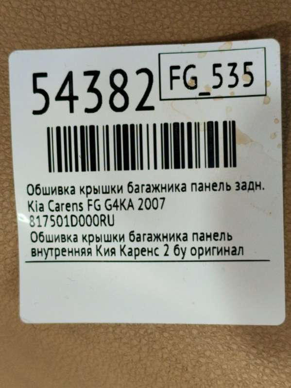 Купить Обшивка крышки багажника Киа КАРЕНС на авторазборке для иномарок Europodbor.ru в Новосибирске.