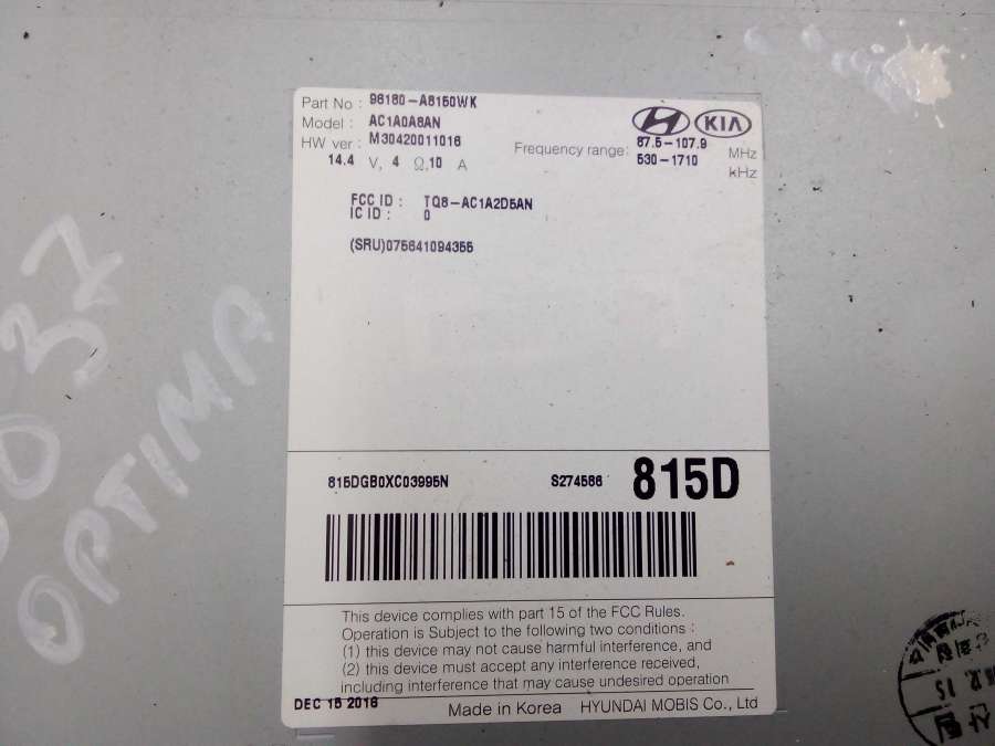 Купить Магнитола (аудио система) Киа ОПТИМА (2010, 2011, 2012, 2013, 2014, 2015) на авторазборке для иномарок Europodbor.ru в Новосибирске.