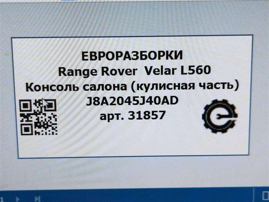 Консоль салона (кулисная часть) к Land Rover Range Rover Velar, 2019