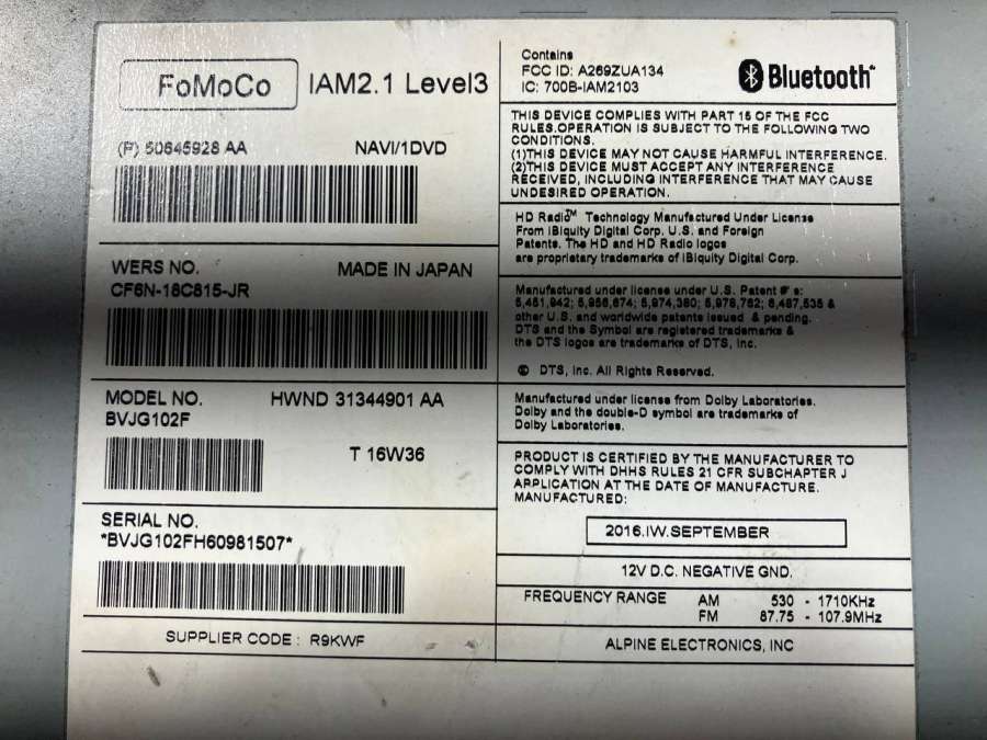 - Номера запчасти: CF6N-18C815-JRHWND31344901AA