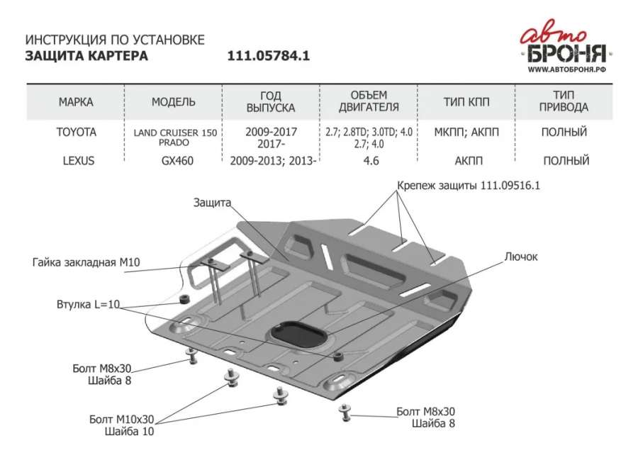 Защита (пыльник) двигателя к Lexus GX 1, 2004