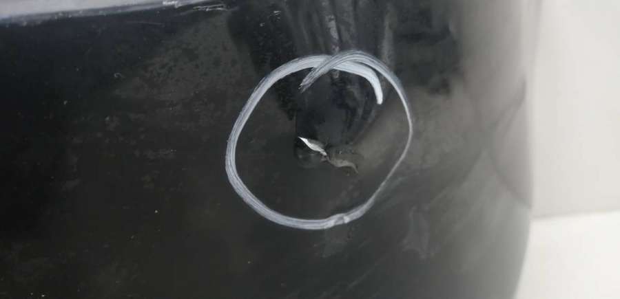 AMG. Небольшая вмятина на хромовой накладке.