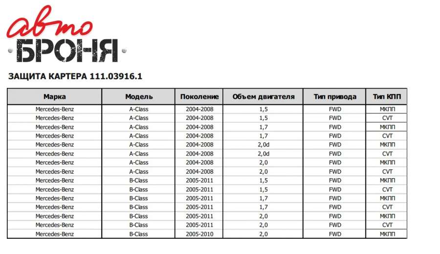 - Название:Защита двигателя Mercedes A W168 (1997-2004) 310520