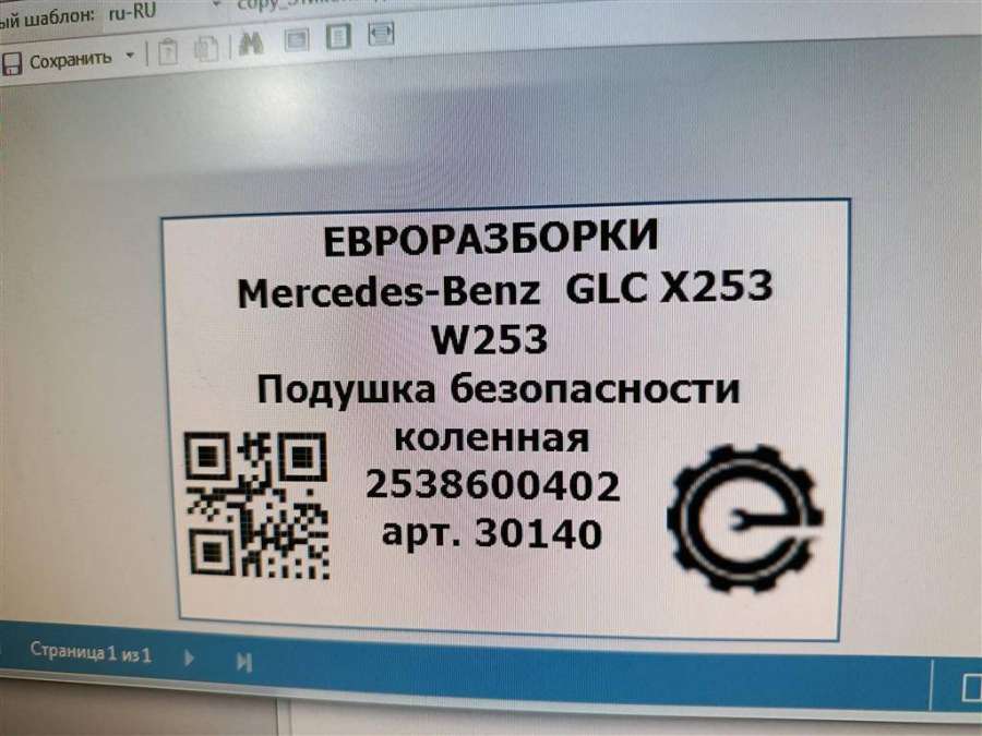 Купить Подушка безопасности коленная Мерседес GLC на авторазборке для иномарок Europodbor.ru в Новосибирске.