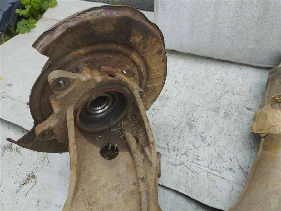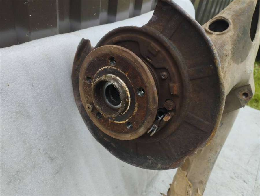 Кулак задний левый со ступицей и тормозным диском.