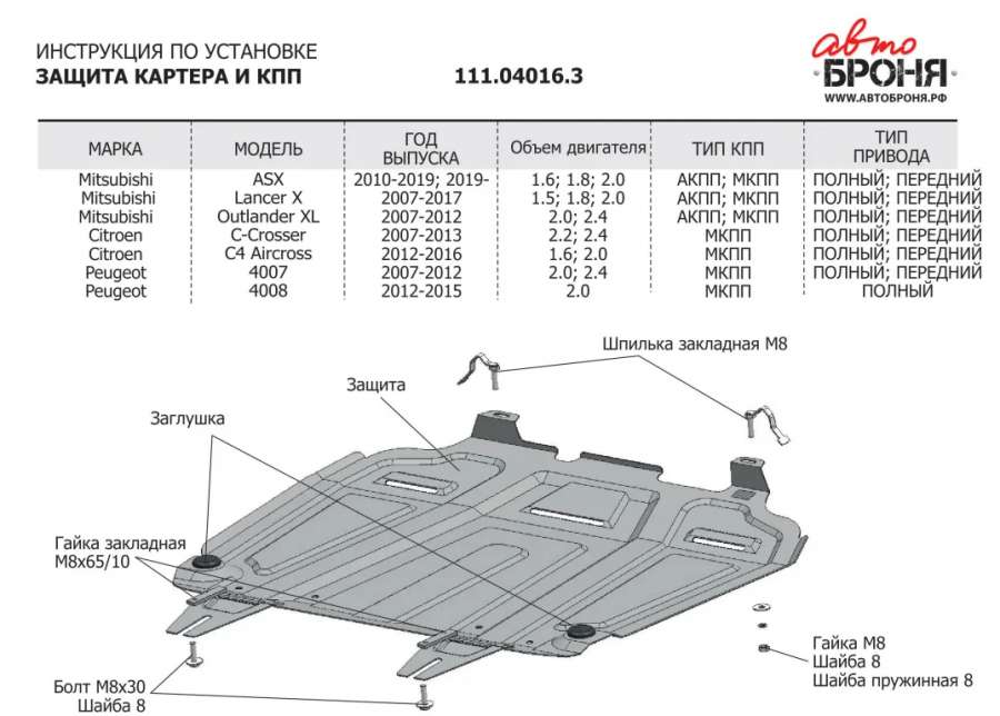 - Название:Защита двигателя MITSUBISHI LANCER 07-09