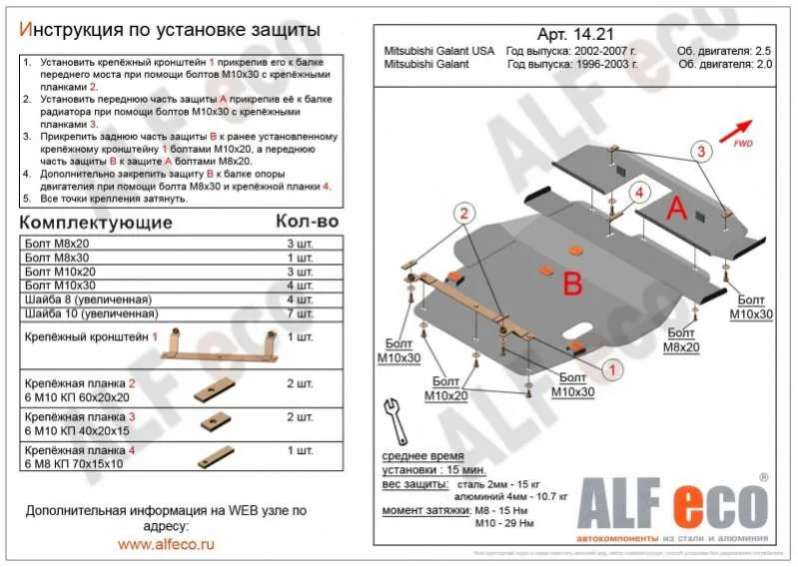 Защита двигателя металлическая Mitsubishi