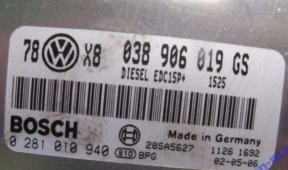 - Номера запчасти: 038906019GS0281010940EDC15P+