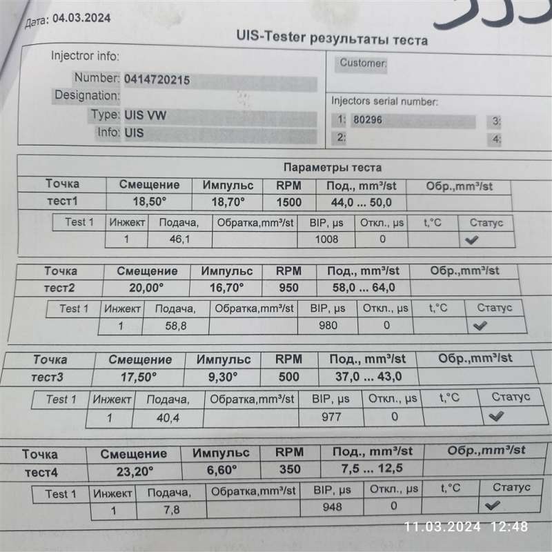 - Номера запчасти: 03G130073G 0414720404 0986441566