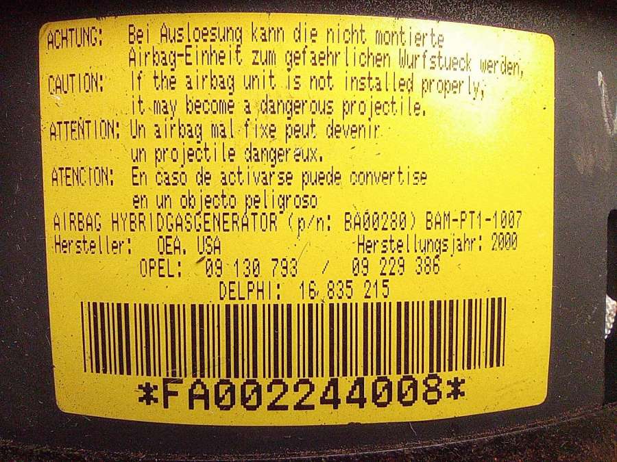 Подушка безопасности к Opel Corsa C (2000-2003), 2000