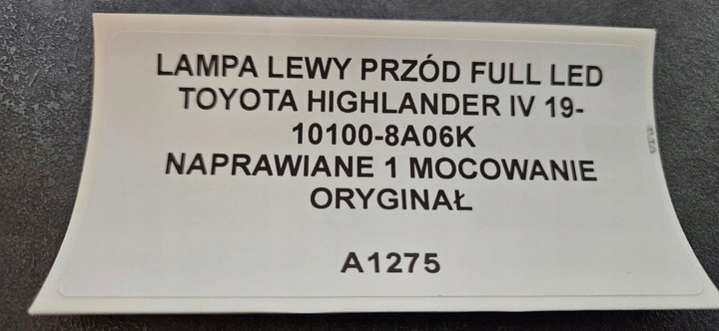 Фара передняя левая к Toyota Highlander 3 restailing, 2019