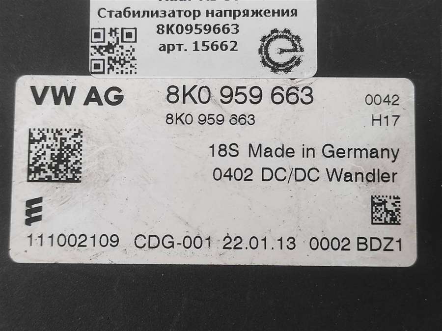 - Номера запчасти: 8K0959663B1110021098K09596638K0959663B8K0959663C8K0959663D8K0959663F