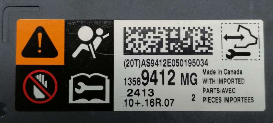 - Номера запчасти: 13589412