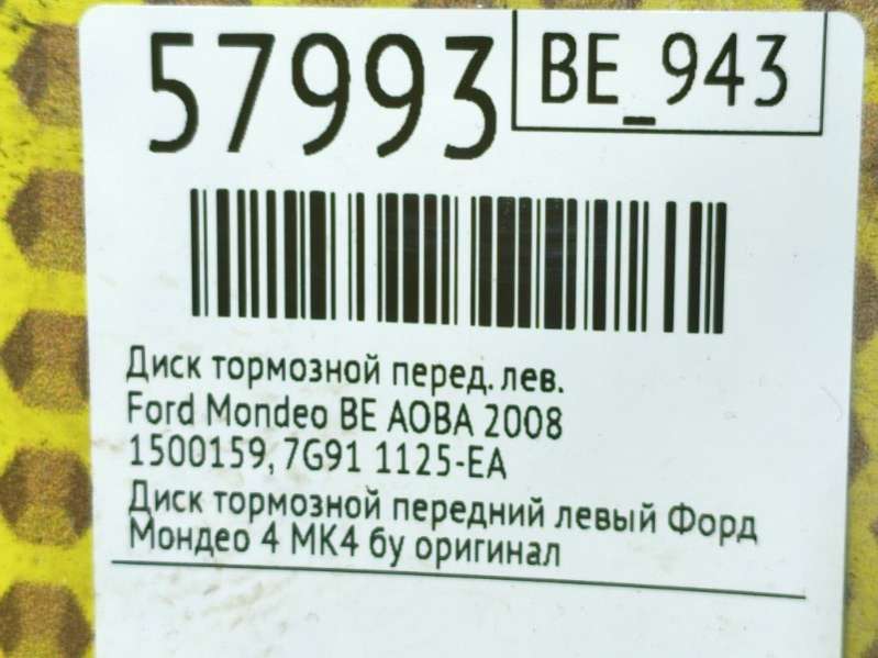 Диск тормозной к Ford Mondeo 4 2007-2015, 2007