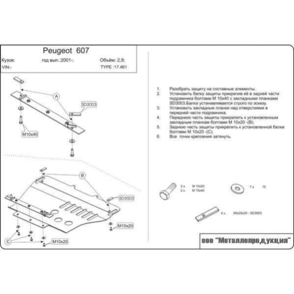 Защита двигателя металлическая к Peugeot 607, 2008
