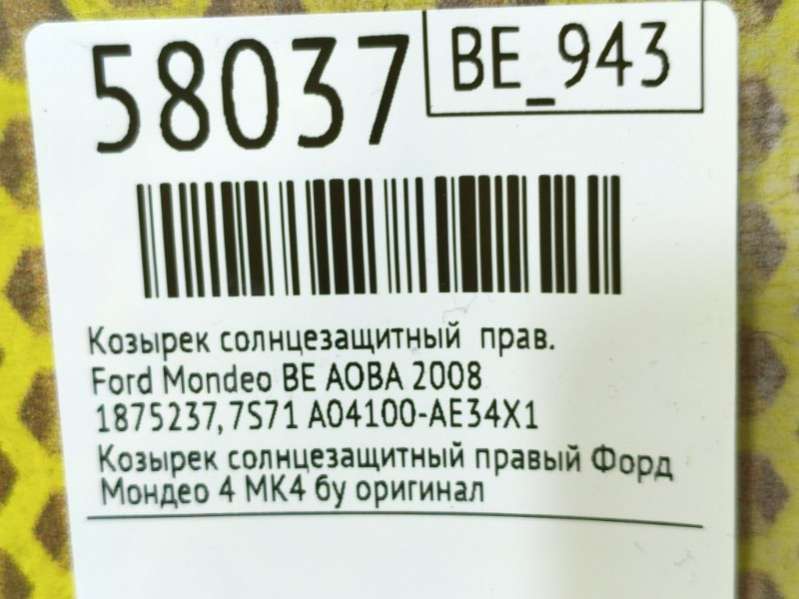 Козырек солнцезащитный к Ford Mondeo BE, 2008