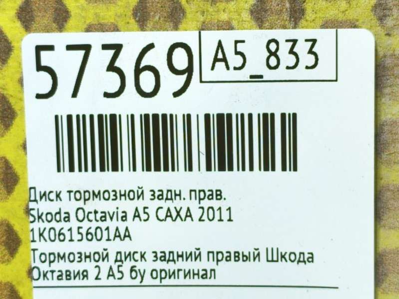 Диск тормозной задний правый Шкода Йети бу оригинал