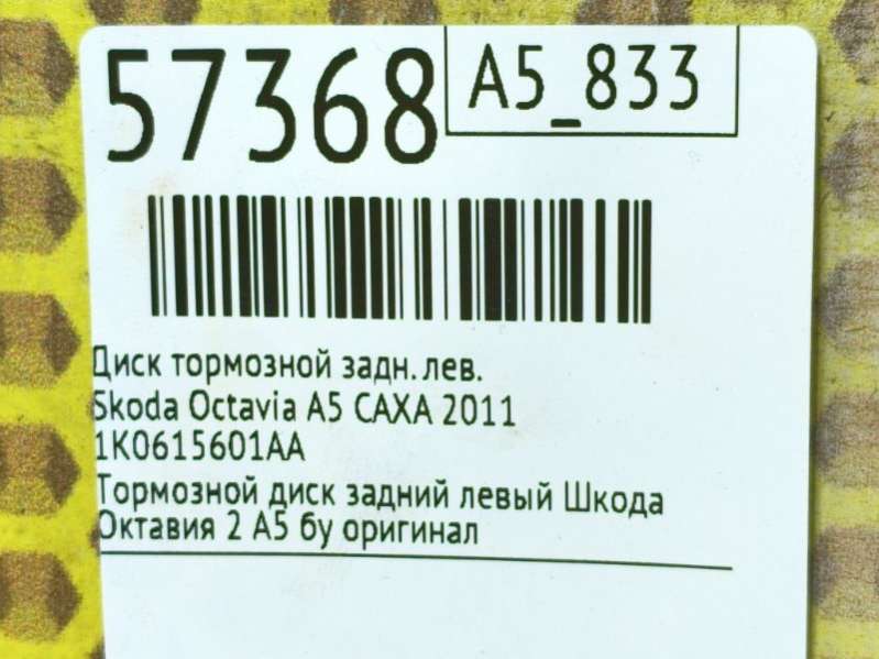 Диск тормозной задний левый Шкода Йети бу оригинал