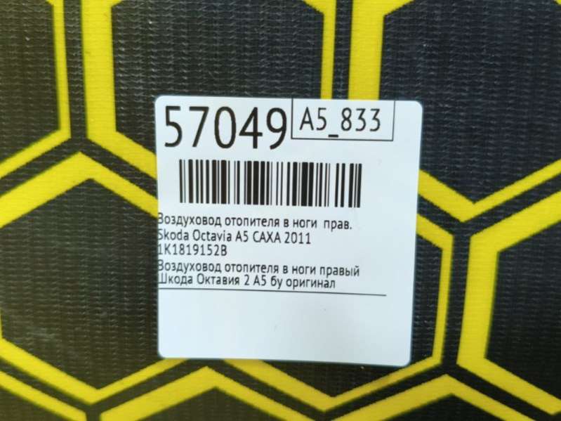 Воздуховод отопителя в ноги к Skoda Octavia A5, 2011