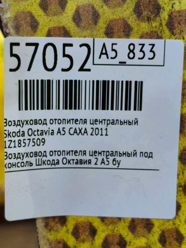 Воздуховод отопителя центральный к Skoda Octavia A5, 2011