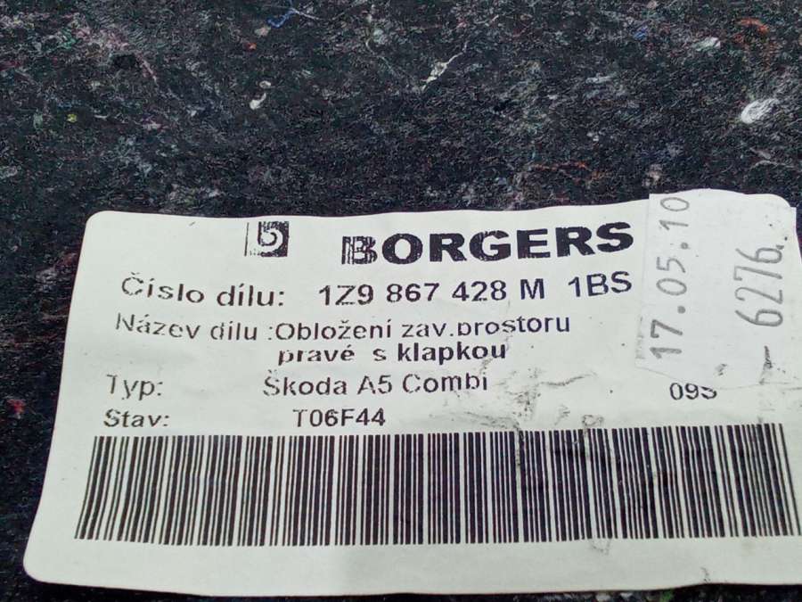 Обшивка багажника к Skoda Octavia A5, 2009