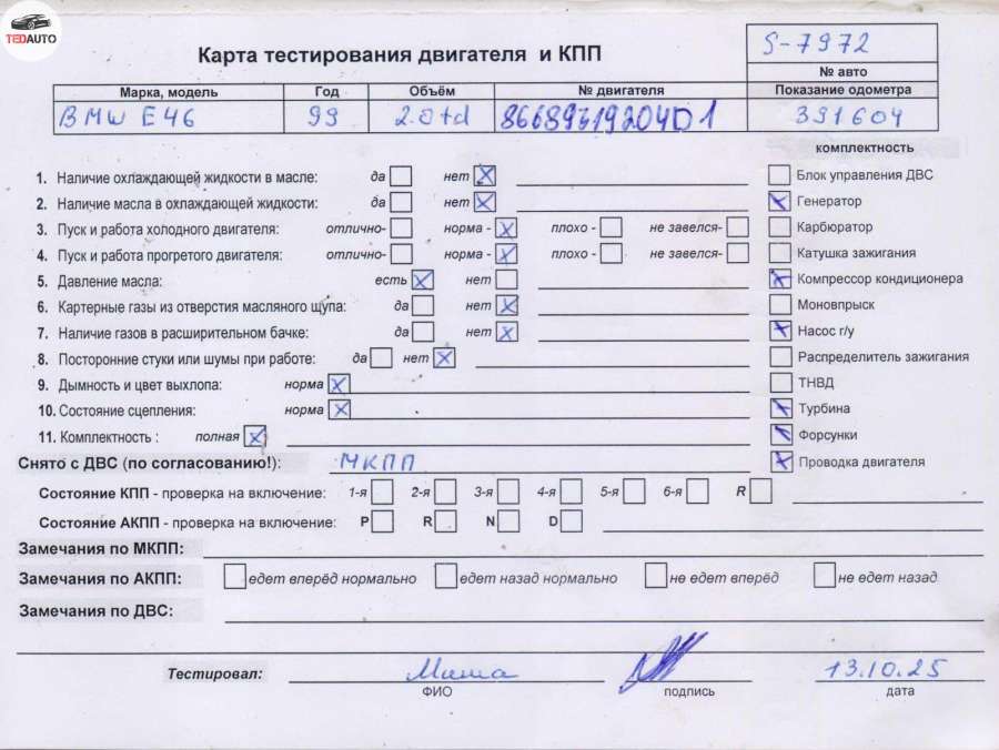 - Авто: 2.0 Дизель