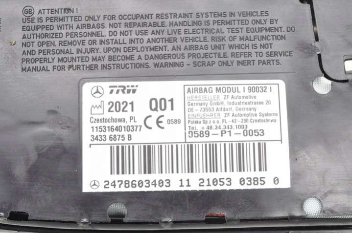Подушка безопасности к Mercedes GLA H247 2 поколение (2020-2024), 2020