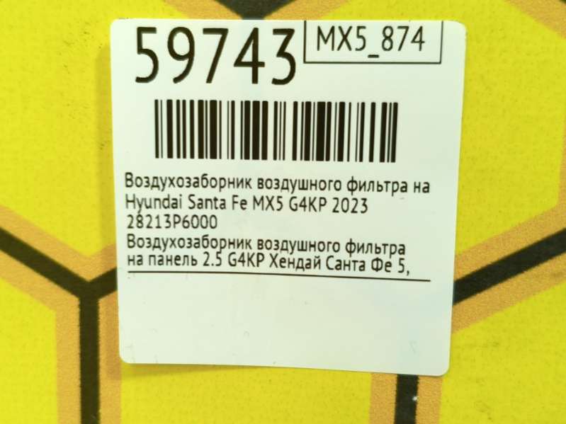 Воздухозаборник воздушного фильтра на панели к Hyundai Santa Fe MX5, 2023