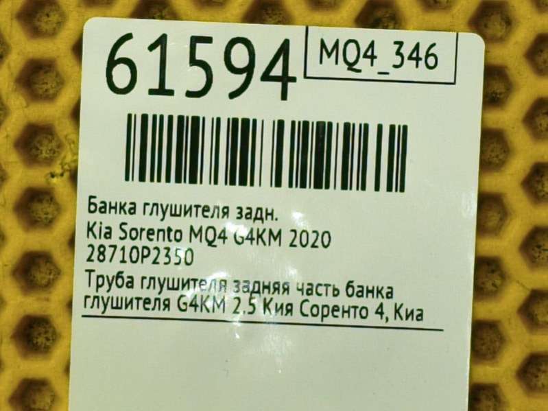 Банка глушителя к Kia Sorento MQ4, 2020