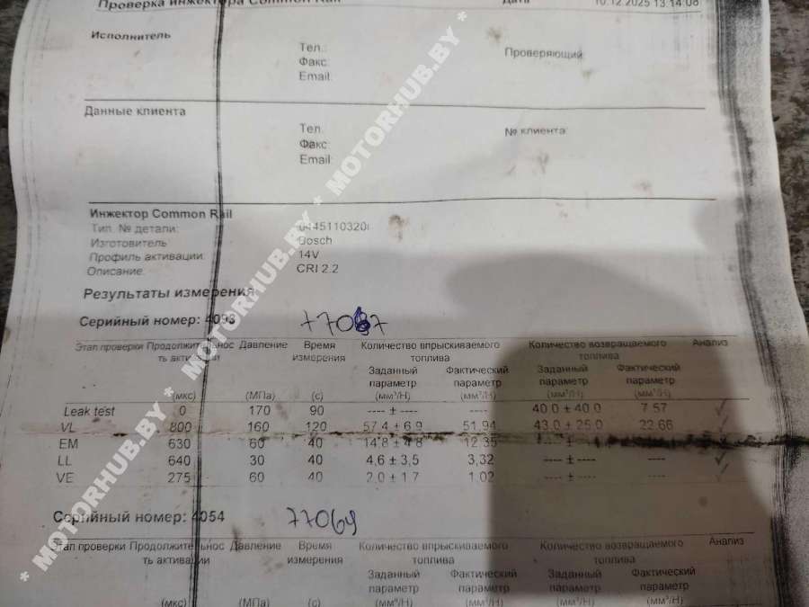 - Номера запчасти: 0445110320338002a900
