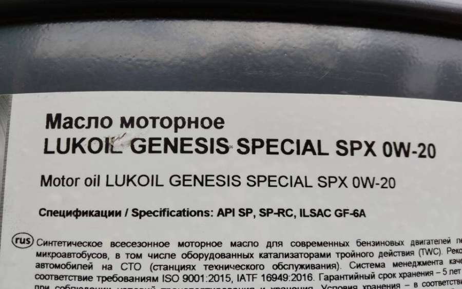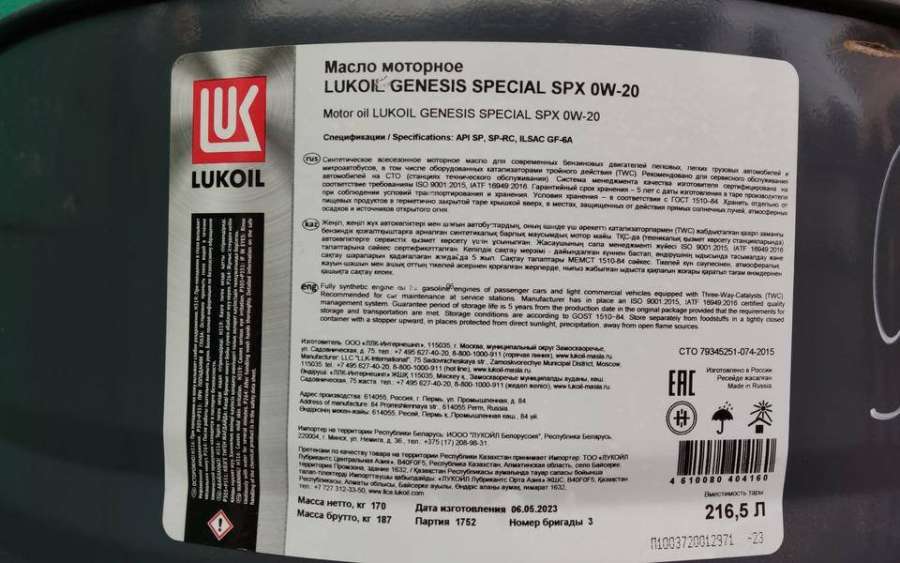 - Название:Масло моторное LUKOIL GENESIS SPECIAL SPX 0W-20 216,5л синтетическое