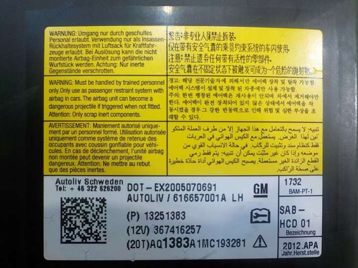Подушка безопасности к Opel Astra J (2009-2012), 2009