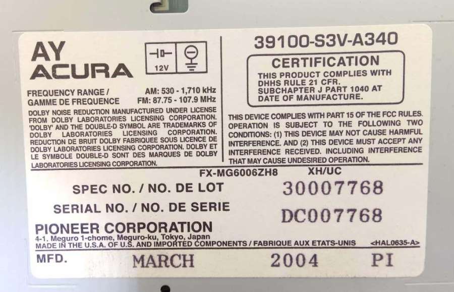 магнитола к Acura MDX внедорожник 5 дв., 2004