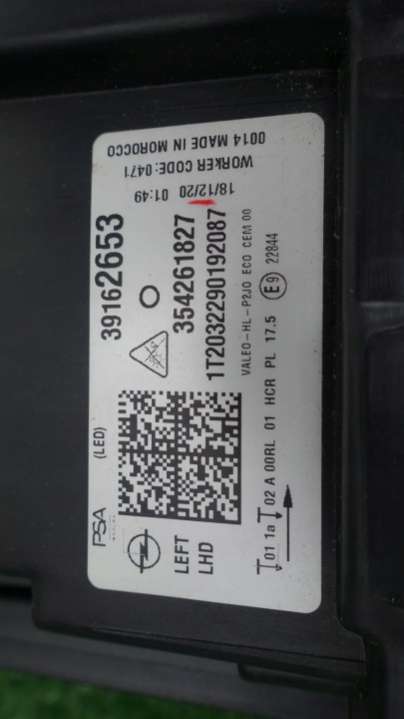 - Номера запчасти: 39162654354261827VALEO-HL-P2J01T2020090192088