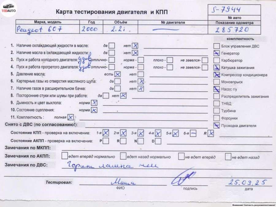 Двигатель к Peugeot 607, 2003