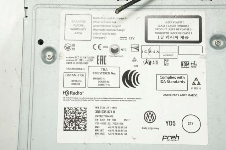 Магнитола (аудио система) к Volkswagen Passat B8, 2017