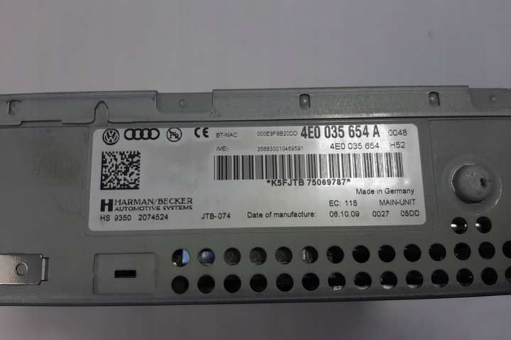 Магнитола (аудио система) к Audi A6 C6 (S6,RS6) Название:Магнитола Артикул: skd78-20227Под заказ: Под заказНомера запчасти: 4E0035654A Спросить Позвонить 34000 Блок управления (другие) к Audi A6 C6 (S6,RS6), 2004 Артикул: PLD-e12115254Под заказ: Под заказНомера запчасти: 4E0035654A Спросить Позвонить 69588